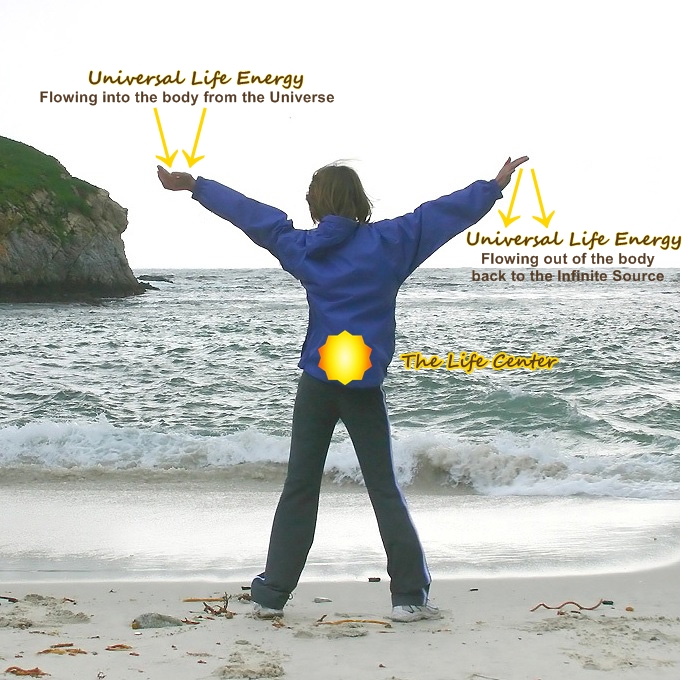 The Teachings include ways to directly contact Source through Universal Life Energy as demonstrated in the image above and mental methods too. Universal Life Energy is used for healing treatments to harmonize physical, mental and emotional issues. It overpowers low energy frequencies, elevating and stimulating our consciousness to awaken to our Higher Self and Soul …. “to awaken within each that which still burns, the Light of Spirit which we all carry within us all the time.”