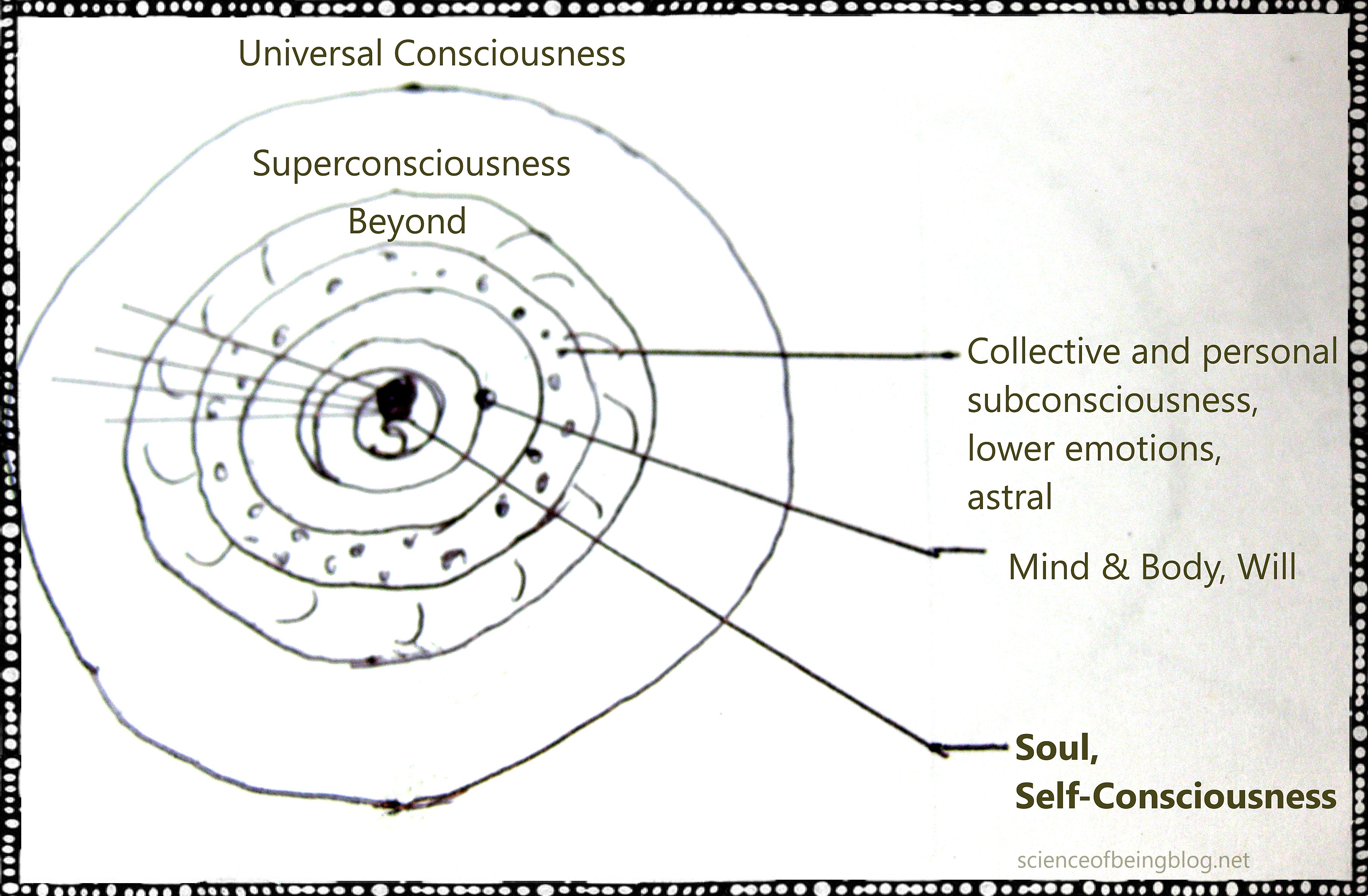 “That perfection, latent in Subconsciousness since the time when it was first split off from the Perfect Mind Ray, waits only for a way to be broken for it through the successive crusts of imperfect human thought and experience which the Conscious Self has laid down over it.”